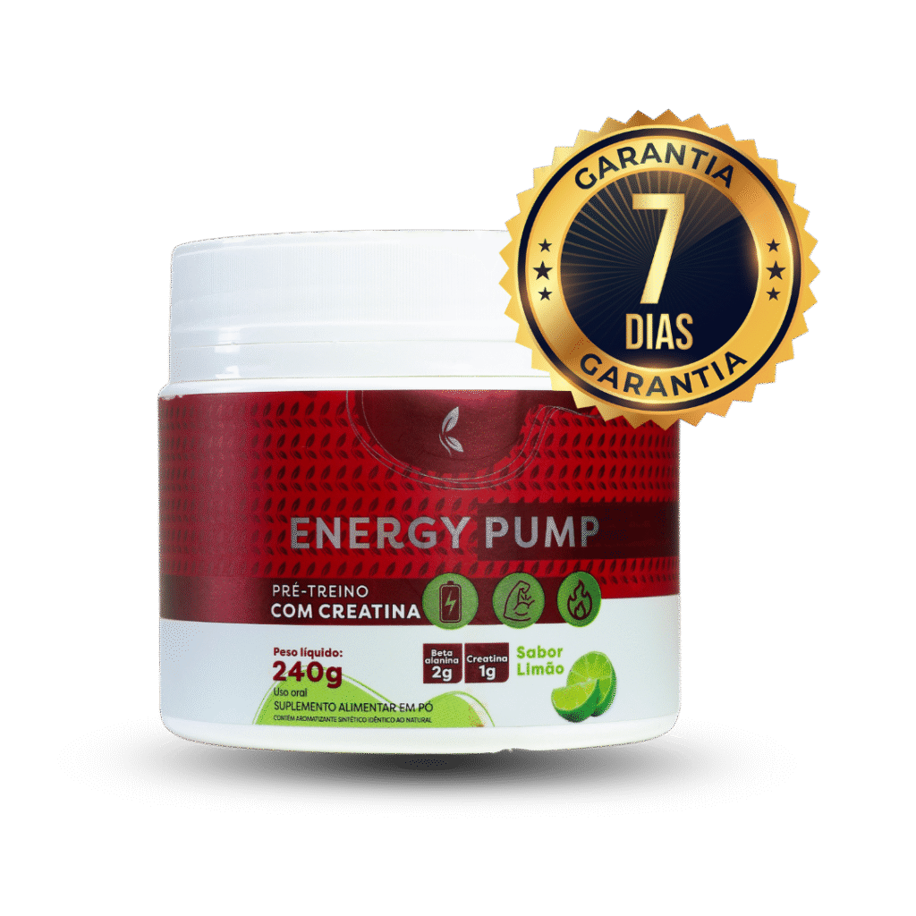 O ENERGY PUMP é um pré-treino inovador, sem cafeína, desenvolvido para proporcionar explosão de força, foco máximo e um bombeamento muscular intenso tudo isso com mais saúde e sem efeitos colaterais como insônia ou taquicardia.